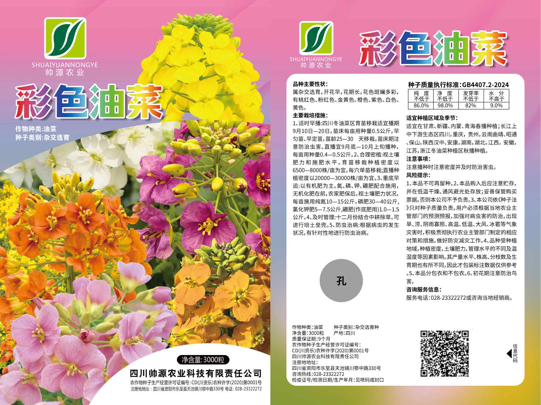 四川帥源農業(yè)科技有限責任公司集科研、生產、經營于一體,技術實力強,資產雄厚。擁有一支多年從事品種選育和種子生產經營經驗、團結敬業(yè)高素質的員工隊伍,其中具有中、高級專業(yè)技術職稱的達80%。在省內外建有穩(wěn)固的種子生產基地。 公司管理體系完善,營銷網絡健全。始終貫徹“以質量求生存、以信譽求發(fā)展”的營銷理念;以優(yōu)質的產品,合理的價格,至善至美的服務,與種子企業(yè)建立了緊密的業(yè)務合作關系,種子暢銷全國各地。 公司誠信經營,獲社會各界認可和好評。 ......